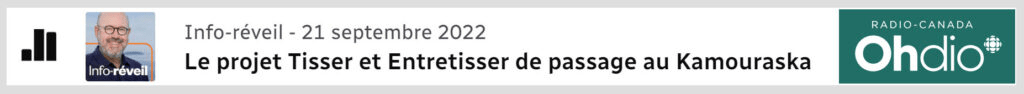 - Le projet Tisser et Entretisser de passage à Kamouraska, Émission Info-Réveil avec Eric Barrette, Radio-Canada, 21-09-2022