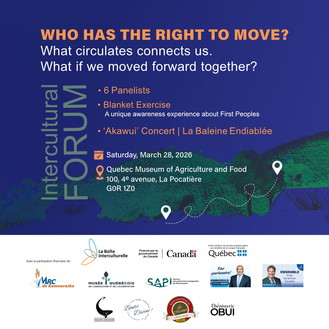 La Pocatière, January 20, 2026 – La Boîte interculturelle invites the public to the Intercultural Forum – Who gets to participate (the Forum will be held in French), an event for reflection and dialogue to be held on March 28 at the Musée québécois de l’agriculture et de l’alimentation, located at 100, 4e Avenue, La Pocatière (G0R 1Z0).