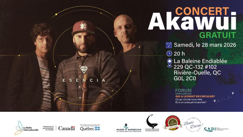 De New York à Toronto, du Maroc à la Colombie, de Montréal au Chili… et maintenant Rivière-Ouelle, Akawui présente ESENCIA, un concert immersif de 70 minutes où la musique retrace les grandes étapes de sa vie.